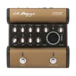 LR Baggs created the Venue DI so you can travel light, set up fast, and sound incredible anywhere you plug in. The Venue DI gives you complete control by combining a full-isolation DI output, 5-band EQ with adjustable low & hi-mid bands, variable clean boost, and chromatic tuner all in one acoustic pedal. With its all-discrete signal path, hi-graded semiconductors, and exclusive use of audiophile grade film capacitors, the Venue DI is on par with the world’s elite preamps and provides a studio quality sound for the stage.