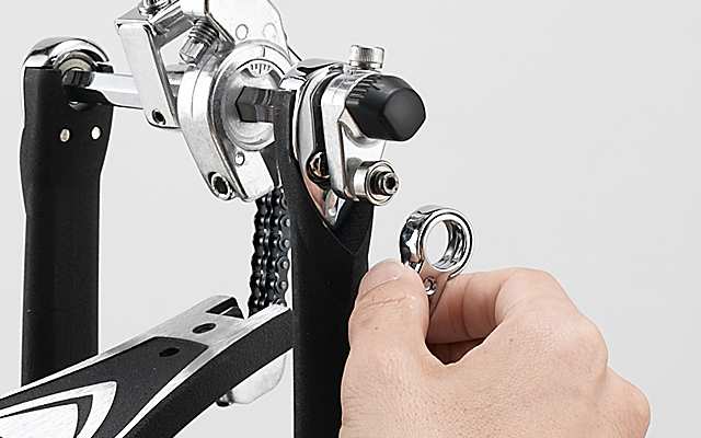 Vari-Pitch beater angle adjustments are completely independent of the footboard angle. The Speedo-Ring allows you to adjust the angle of the footboard link independently of the beater angle. The combination of the Speedo-Ring and the Vari-Pitch offer a range of incremental adjustments that will satisfy any style.