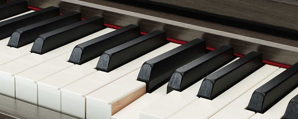 Our proprietary synthetic ebony and ivory keytops have a natural, comfortable feel that players of all levels can’t wait to get their hands on.