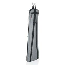 The innovative closet hanging bass guitar bag by Gator Cases provides extra storage by occupying unused closet space. The bag features dual rail hooks that are attached directly to reinforced nylon web straps on the bag to ensure your guitar hangs safely. Simply hook the bag directly over your closet railing and load in your electric bass or acoustic bass guitar of choice. The tough, grey polyester fabric exterior and soft tricot interior lining prevents damage to your instrument when coming into contact with other items in your closet, along with providing coverage from dust. A built-in ventilation grommet is also included to ensure proper humidity during long-term storage. Mesh pockets with hook-and-loop closures on the rear side of the bag provide additional storage for accessories, such as a tuner, strings and picks. When you’re ready to take your guitar out from hiding, retrieve it by using the rear handle strap. The GCB-BASS closet hanging bag is a perfect storage solution for students in small dorms, players with limited living space, and those who just require extra space for keeping guitars out of the way.