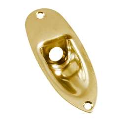 Jack plate for Stratocaster, with mounting screws. Gold Finish.