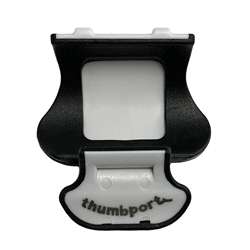The Thumbport allows greater balance in holding the flute. It is comprised of a C-shaped shell and a thumb-like extension. The Thumbport helps the player to place the right thumb at an efficient spot and provides additional support.