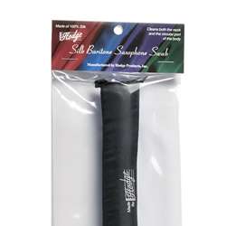 The silk baritone saxophone swabs are uniquely designed to swab out the circular part of the body after each playing session. This swab is designed to keep this area clean and to keep gunk from building up. It is a foam covered flexible snake, 24 inches long and the diameter of the bore of the circular section of the saxophone, with a silk covering which quickly absorbs the water that has accumulated. This swab is pushed into the top of the saxophone and around the loop and then pulled back out removing the moisture. The neck is cleaned similarly.