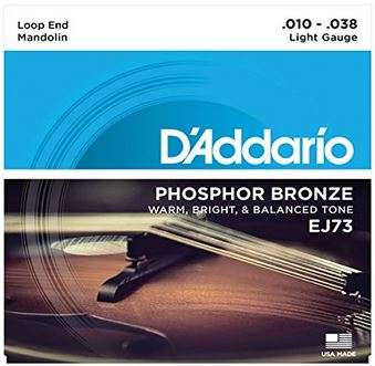 EJ73, D'Addario's most popular light gauge mandolin set, delivers warm and bright phosphor bronze tone with the perfect amount of tension for easy playability and projection. Loopend construction for universal fit.