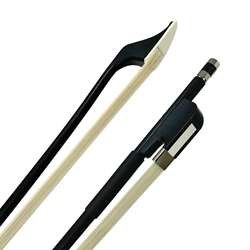 Glasser, the company that patented the world's first Fiberglass bow, offers students a good alternative to inexpensive wood bows, since they are more durable and will not warp. Glasser standard Fiberglass bows feature a half-lined bow frog with metal under-slide and an imitation three-part button. The Standard Fiberglass bows come in a satin black finish, have genuine unbleached white horsehair, and a leatherette grip.