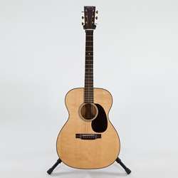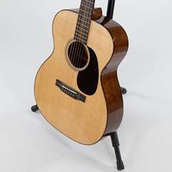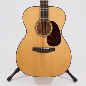The 000-18 Modern Deluxe is a new take on Martin Vintage. This guitar is packed with custom features and modern technology that you have to see, feel, and hear for yourself. The vintage appointments include a spruce VINTAGE TONE SYSTEM® (VTS) top, a dovetail neck joint, and natural protein glue construction, giving it the rich, fully aged Martin tone that has inspired generations. The look is unlike anything in our production line with East Indian rosewood binding, stylish gold frets, gold open-gear tuners, and a unique 1930s style script logo inlaid in pearl on the headstock. Some ultra-modern features include Liquidmetal® bridge pins with red dots and a composite carbon fiber bridgeplate that boosts volume, and a neck shape that is slightly asymmetrical for maximum hand comfort up and down the fretboard. This guitar is anything but standard.