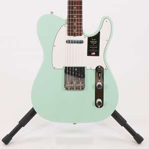 By 1963, a new combination of tonewoods married the punch and focus of alder with the warmth added by a round-lam rosewood fingerboard, enhancing the signature Tele® twang. Featuring Pure Vintage ‘63 Telecaster® pickups, triple threaded-steel saddle bridge and a comfortable “C”-shape maple neck, the American Vintage II 1963 Telecaster reproduces the quintessential tone and feel of the original. Characteristic of production in 1963, this Tele features clay dots (narrow-spaced at the 12th fret), a 7.25” radius fingerboard fingerboard and is offered in three colors: Crimson Red Transparent over mahogany and 3-Color Sunburst or Surf Green over alder.