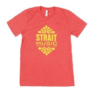 Support your favorite Austin, TX music store with this stylish yellow logo on an incredibly soft red Bella+Canvas tee. Made from airlume combed and ring-spun long-staple cotton, and using an eco-friendly dye process — this fit is sure to show off your pride for an Austin original while giving you the freedom and comfort to get to your next gig in style!