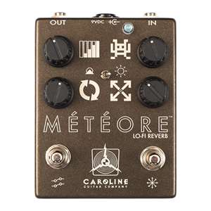 Inspired by the ultra-modern line 14 of the Paris Métro and its sleek platforms of glass, steel and tile that add all kinds of cool sonic artifacts to the space, the MÉTÉORE™ (pronounced may-tay-or) is Caroline Guitar Company's take on reverb. The original signal path has been kept analog and pure, while giving you overdrive and regeneration controls to take you from spring reverb sounds to something much bigger. The controls are very interactive with each other, and as per Caroline tradition, this pedal can get VERY loud. You know, something something power, responsibility, blah blah blah…