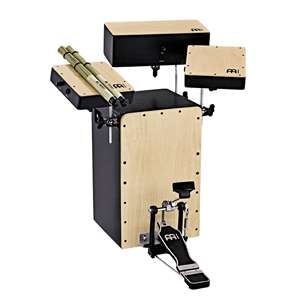 An acoustic take on a cocktail kit set up, the MEINL Cocktail Cajon Kit offers players a wide range of sounds from bass and snare to bongo cajons and a tom, all with wood Cajon-style instruments.