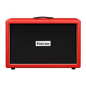 The Friedman JEL 2x12 is a rear ported closed-back extension cabinet which utilizes tongue and groove Baltic Birch construction to deliver the bass, mid response and great sound you would expect from a Friedman cab. The JEL 212 Cab features red tolex, white piping and black grille cloth, designed to cosmetically match the Friedman Signature Jake E Lee heads.