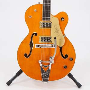 A blast from the classic era of Gretsch's storied past, the G6120T-59 Vintage Select Edition '59 Chet Atkins® Hollow Body with Bigsby® revisits this historic model. Packed with astounding tone, comfortable feel and elegantly slick style, this instrument is ready to stand by your side onstage or in the studio, bringing out the best in your music and your playing. As refined or raw as you need it to be, this guitar will be an invaluable center-point of your sonic arsenal.