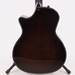Taylor's beveled cutaway design provides a more player-friendly feel for guitarists who utilize every inch of the fretboard. It features a compound design with a smoothened edge along the corner of the body between the end of the cutaway and the neck heel, providing a more comfortable feel for the fretting hand.