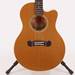 This USED Gibson LC-1 Cascade is an excellent playing guitar with a solid cedar top and beautiful quilted maple back and sides. There is a bit of light finish cracking on the back of the neck trailing down onto the sides of the body, and on the bottom of the body. Includes original hard case.