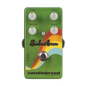There’s nothing like kicking on “ol’ reliable” and watching the faces in the crowd light up as you nail your finest riff. The Sidearm is that device. Featuring a fresh take on the classic ‘79 “green overdrive,” the Sidearm lets you tailor your drive sound to accompany the rest of your rig, rather than the other way around. The typical “green” overdrive features a combination of filters at different stages to give its characteristic sound. These have all been carefully adjusted to get a little more out of the circuit, accentuating the new Mids control and the overhauled Tone knob. The Sidearm’s “hump frequency” sits at 1KHz, but the mids control sits at the typical “green” frequency of 720Hz, letting you boost or cut this band at will for a more customizable tone. The Tone control boosts lows and cuts highs when turned down, and has the opposite effect when cranked. This control sits centered at 1KHz, the same as the hump, letting you fine-tune the entire frequency response and giving you back some lost treble, or thickening up the tone if you’re plugged into your amp’s bright channel.