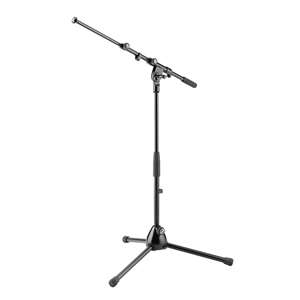Low-level, telescopic stand with foldable legs. Comes with 2-piece boom arm.