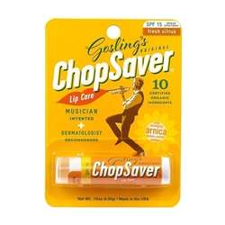 Initially developed for the unique lip care issues of musicians, ChopSaver is now enjoyed by all kinds of people who are looking for a healthier alternative for their lip care needs. The formula is so effective, it is recommended by dermatologists for patients with chronic lip problems. ChopSaver Gold combines the goodness of herbs and nature's finest oils and butters with sun protection. Kissed with the essential oils of citrus fruits, ChopSaver feels great the moment you put it on. See why people around the world have made ChopSaver part of their daily routine. Save your chops with ChopSaver!