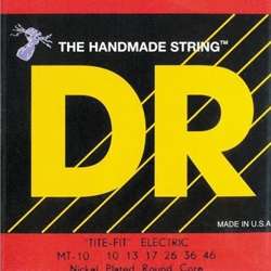 Tite-Fit round-wound nickel-plated electric guitar strings from DR are designed to be great all-around strings. They are available in a wide range of gauges. Based upon a round core, the construction techniques for DR Tite-Fit electrics are venerable. However, the core wire and wrap wire in DR's are the latest, most advanced, and expensive metals available. For flexibility, for tone, for long life; for rock, blues, heavy metal, jazz. Tite-Fits are an incredible all-around string.