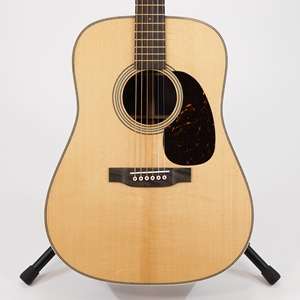 The D-28 Modern Deluxe is a new take on Martin Vintage. This guitar is packed with custom features and modern technology that you have to see, feel, and hear for yourself. The vintage appointments include a spruce VINTAGE TONE SYSTEM® (VTS) top, a dovetail neck joint, and natural protein glue construction that give it the rich, fully aged Martin tone that has inspired generations. The look is unlike anything in our production line to date with European flamed maple binding, stylish gold frets, gold open-gear tuners, and a unique 1930s style script logo inlaid in pearl on the headstock. Some ultra-modern features include Liquidmetal® bridge pins with red dots and a composite carbon fiber bridgeplate that boosts volume. The D-28 Modern Deluxe also sports a new neck shape that is slightly asymmetrical for maximum hand comfort up and down the fretboard. This guitar is anything but standard.
