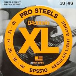 EPS510's offer a super-bright, crunchy tone and corrosion resistance for longer string life. D'Addario XL ProSteels utilize a highly magnetic, corrosion-resistant steel alloy that delivers super-bright tone without shrill overtones. They offer a palette of harmonically rich, brilliantly penetrating highs combined with pronounced, tight-and-tough lows. If you're looking for more crunch, bite, and sustain, ProSteels are the choice for you.