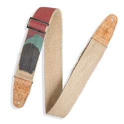 2 inch Hemp Webbing Guitar Strap with Ink Printed Sunset Design And 2.5 Inch Hemp Pocket on Back. Two-ply Natural Cork Ends With Silver Metal Slide and Loop Hardware. Adjustable From 37 to 62 inches.