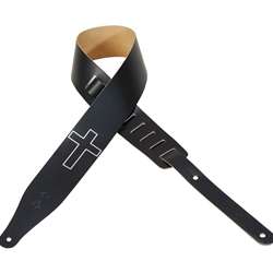 Designed to complement your spiritual journey, this Levy's 2 1/2" wide black genuine leather guitar strap is crafted with utmost care. Adjustable to 54.5".