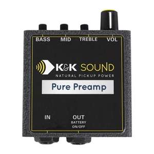 The Pure Preamp is a K&K time-tested external preamp, featuring +/-20 db bass and mid EQ -, and +/- 16 dB treble EQ controls plus an internal gain trimmer that allows you to adjust the gain from factor 0.5 (half as loud as input signal) to factor 10 (10 times as loud as input signal). This belt clip unit has been specifically designed for the frequencies of the acoustic guitar but it is also great for many other instruments.