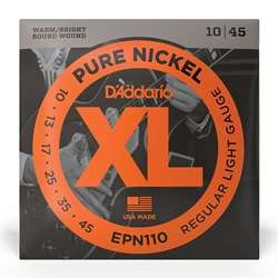 XL Pure Nickel is our vintage electric string set, designed to embody the vibe of the ‘50s. In that early era of electric guitar, pure nickel was the main alloy used in electric guitar strings. Made with a high carbon steel core and pure nickel wrap wire, these electric strings revive the rich, clean tones heard in early blues, rock & roll, and country music. This 10-45 Regular Light set provides a nice balance of tone and playability.