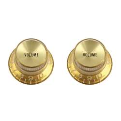 Gold with Gold Reflector cap Volume knobs (Set of 2), fits USA split shaft pots.
